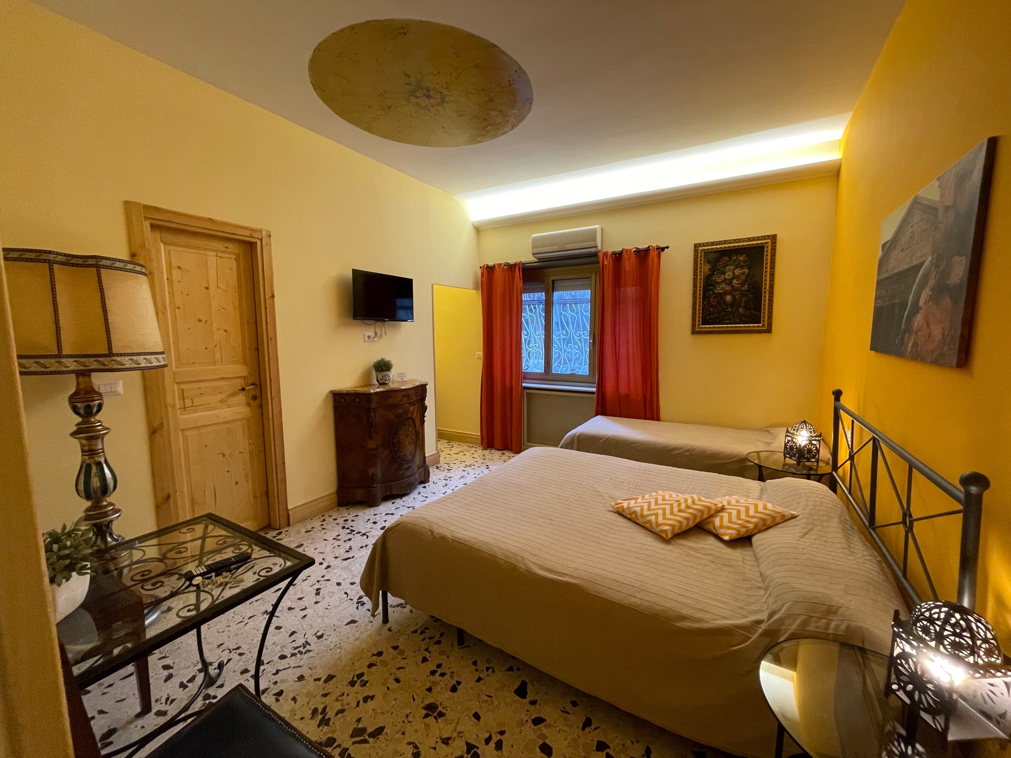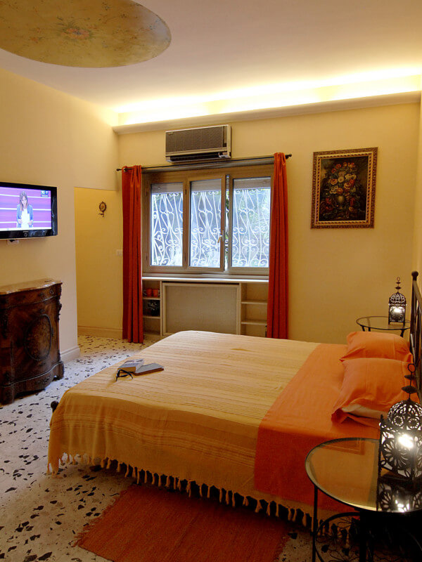 La camera Queen è la nostra camera più classica, che vuole rappresentare la nostra casa prima che venisse convertita in bed and breakfast. I colori di questa camera e il soffitto dipinto a mano trasmettono comfort e relax. La grande finestra insonorizzata offre una vista meravigliosa del nostro giardino. Il bagno con doccia walk-in è un mix di pietra, legno e vetro che rende questa camera una delle più preferite da i nostri ospiti.